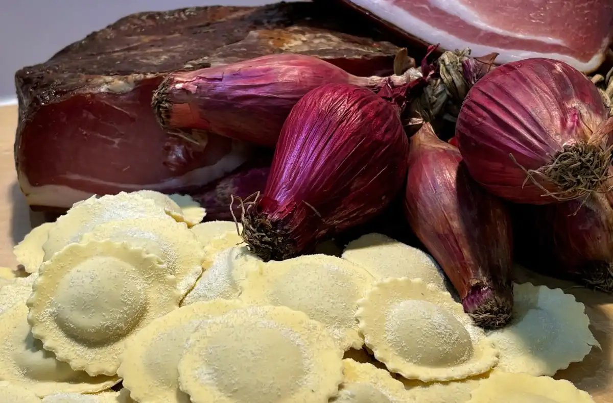 ravioli di cipolla caramellata e speck uniscono dolcezza e sapidità in un equilibrio perfetto. La cipolla, cotta lentamente fino a diventare morbida e profumata, si fonde con il gusto affumicato e deciso dello speck, creando un ripieno ricco, avvolgente e sorprendente. La nostra sfoglia sottile, preparata ogni mattina nel laboratorio del Pastificio da Cristina, racchiude questo mix aromatico garantendo una consistenza vellutata e un risultato elegante in ogni assaggio.Un primo piatto ideale per chi ama i contrasti armoniosi e i sapori intensi della cucina di montagna, reinterpretati con un tocco di artigianalità contemporanea.